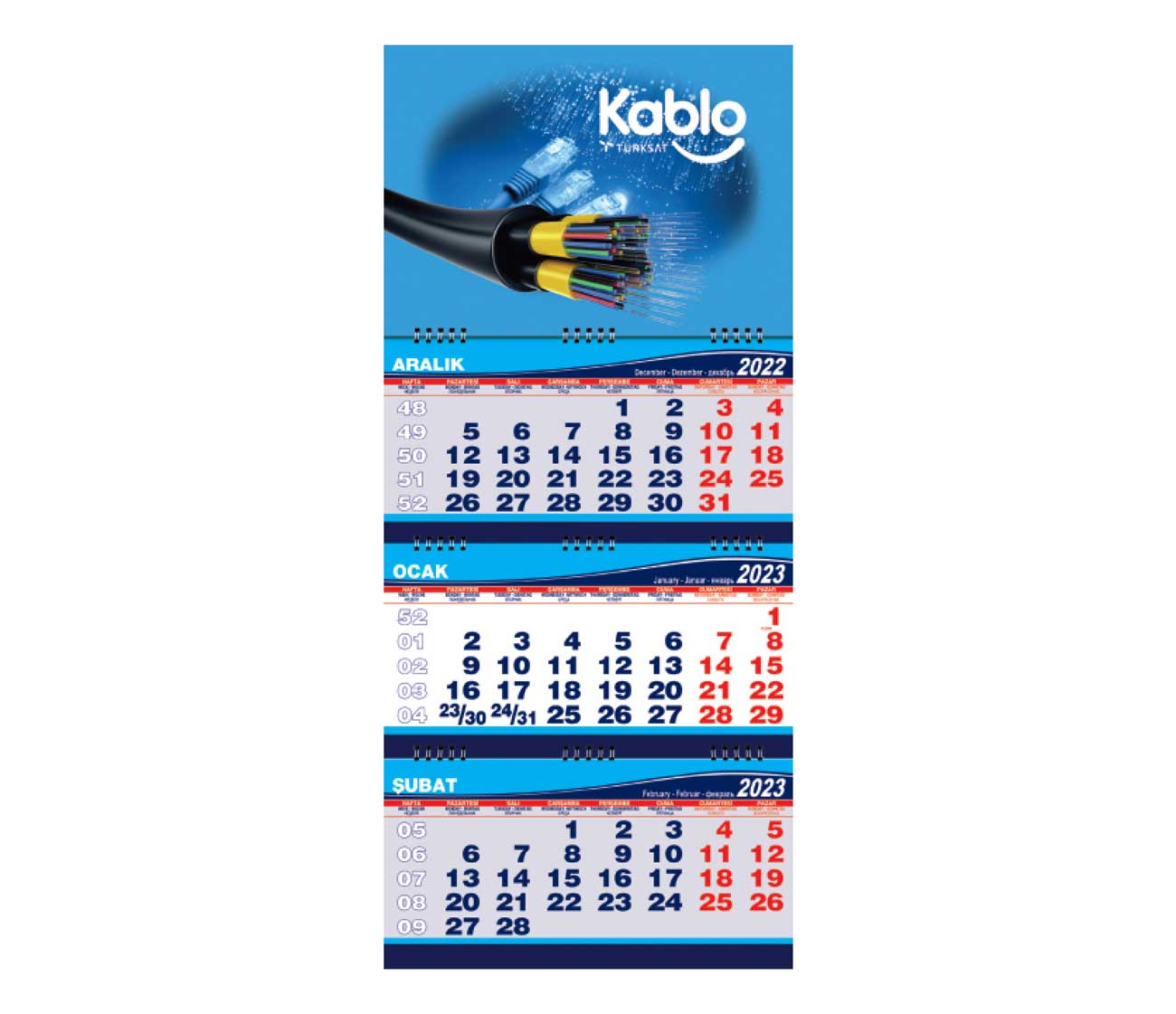 Gemici Takvimi Üç Parça Spiralli 31 x 69,5 cm